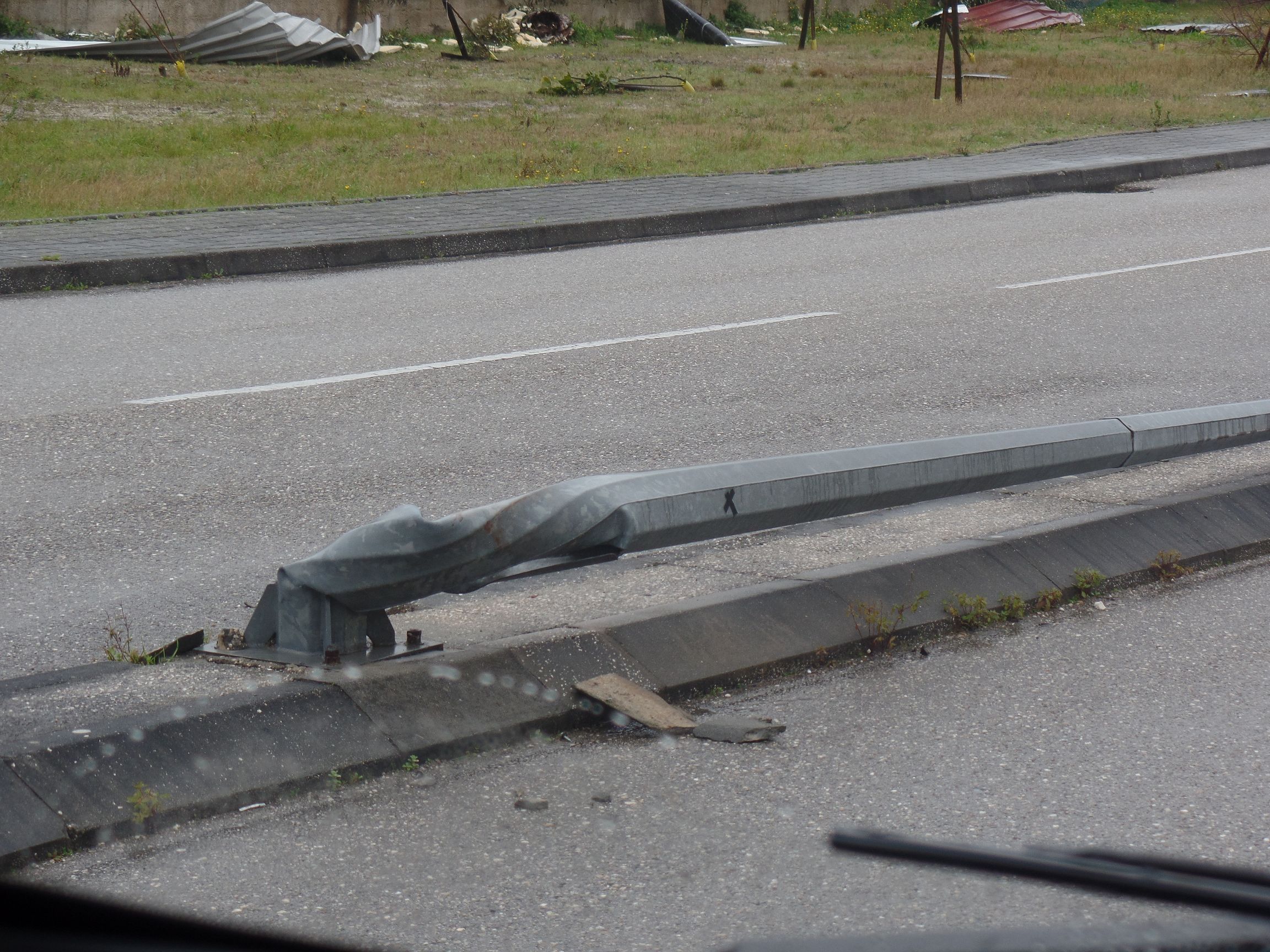 Das erste, was wir bei unserer Ankunft sahen, war ein umgefallenes Riesenrad auf dem nebenan liegenden PKW-Parkplatz, Totalschaden. Das hat wohl einen mächtigen Wumms gegeben, als es vom Sturm umgeworfen wurde.