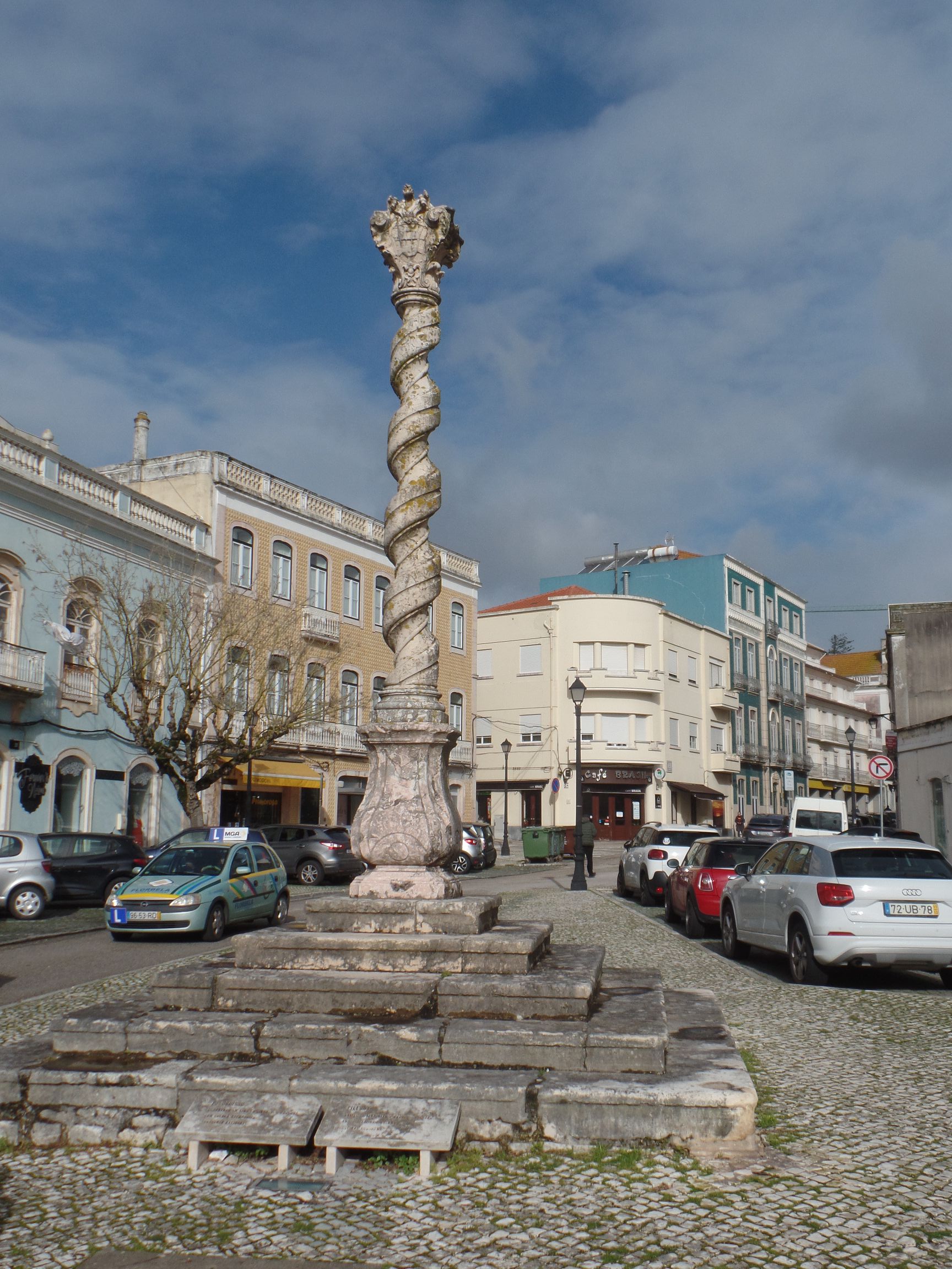 Dann bogen wir in die Straße Largo Luis de Camões ein. Dort fanden wir hinter dem Denkmal für die Gefallenen des Großen Krieges den alten Pranger aus dem Jahre 1782. Heute nennt man die gedrehte Säule „Das städtische und Gerichtsdenkmal“.