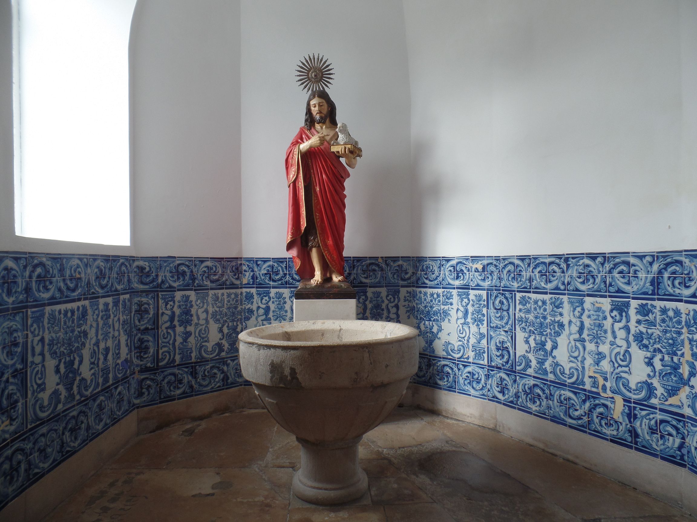 Innen ist die Kirche schlicht, wartet aber mit wunderschönen weiß-blauen Azelejos auf.