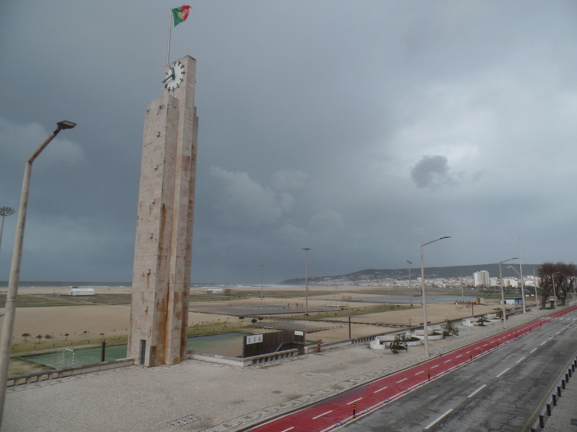 Unten am Strand, an der Avenida 25 de Abril steht der Uhrenturm, ein ziemlich neuer Bau, so Mitte des 20. Jahrhunderts.