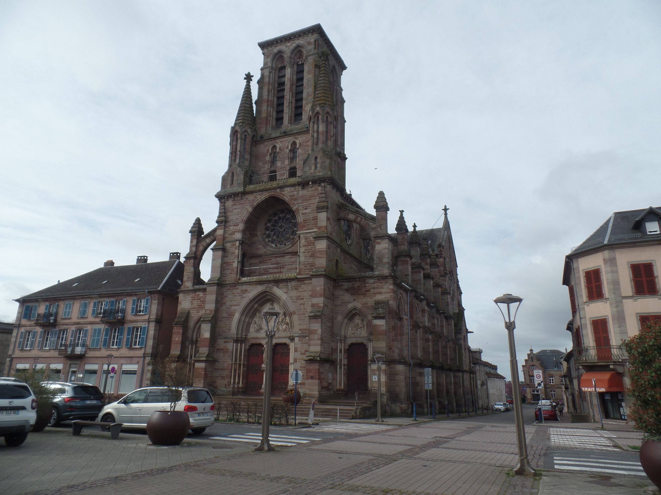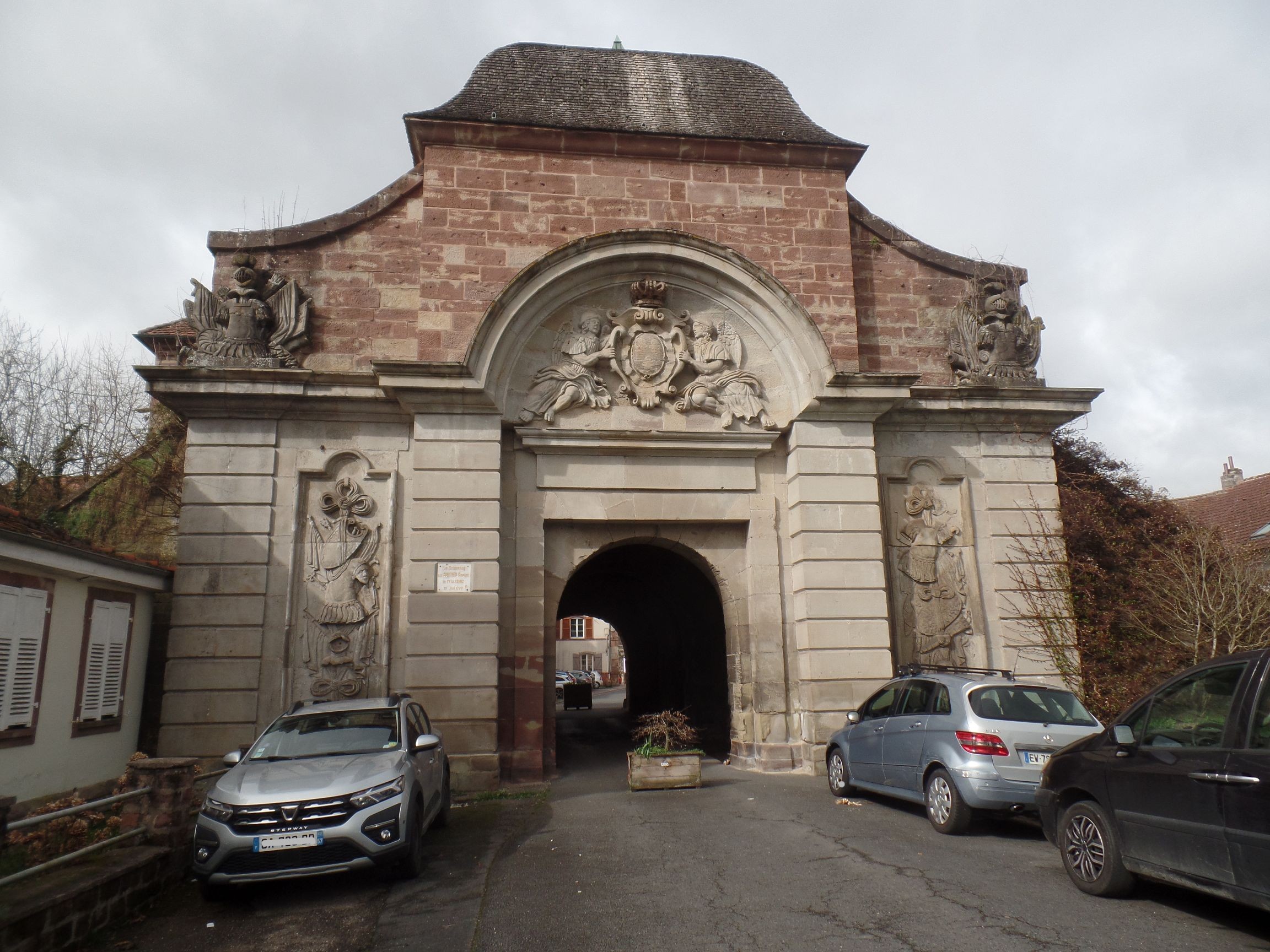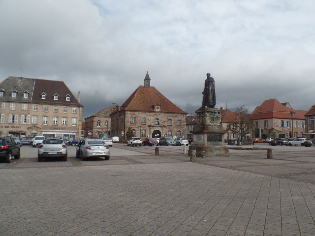 Spaziert man durch die Einfahrt zurück in die Stadt, indem man sich geradeaus hält, gelangt man zum zentralen Place d´Armes. An dessen Rand stehen die Kirche und das Rathaus. In der Mitte erhebt sich die Statue Général Mounton, einem treuen Gefährten Napoleons. Das Denkmal soll an die ruhmreiche Geschichte Pfalzburgs erinnern.