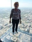 Das Aufregendste war das Skydeck im 103. Stock des Willis Towers, von wo aus man einen 360°-Blick auf Chicago und seine Umgebung hat. An der Nordseite des Towers sind 4 gläserne Erker, inklusive gläsernem Fußboden angebracht. Dort drinnen steht man 412 m über der Straße. Das ist so hoch, dass man kaum die Menschen erkennt, die Züge so klein wie Ameisenkolonnen sind. Selbst die Hochhäuser, die von unten riesig erscheinen, sind gegen den Willis Tower klein. Unglaublich. Nicht jeder hat den Mut, sich auf diese gläsernen Konstruktionen einzulassen. Der Aufzug, der die Besucher nach oben bringt, braucht kaum eine Minute. Die Fahrt ist kaum zu merken, nur dass man durch den Höhenunterschied mehrmals einen Druckausgleich durchführen muss. Man sollte den Aufzug von außen sehen können. Ich glaube, dann würden viele Leute nicht mitfahren.