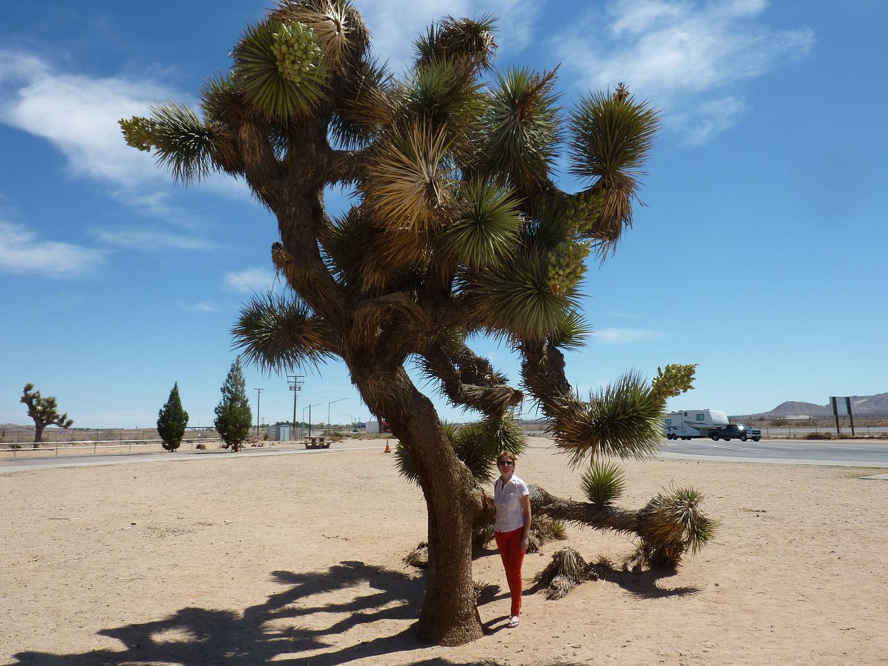 Mojave - beeindruckende YuccasWestlich von Boron steht eine moderne Borax Fabrik. Viele Kilometer fuhren wir nun am Stück, denn unser nächstes Ziel ist der Sequoia Nationalpark. Abwechslung gibt es eigentlich keine, es ist ein einsames und trockenes Land. Die Wüstenbüsche sind kleiner als sonst, manchmal erheben sich Yuccabäume aus der Landschaft.