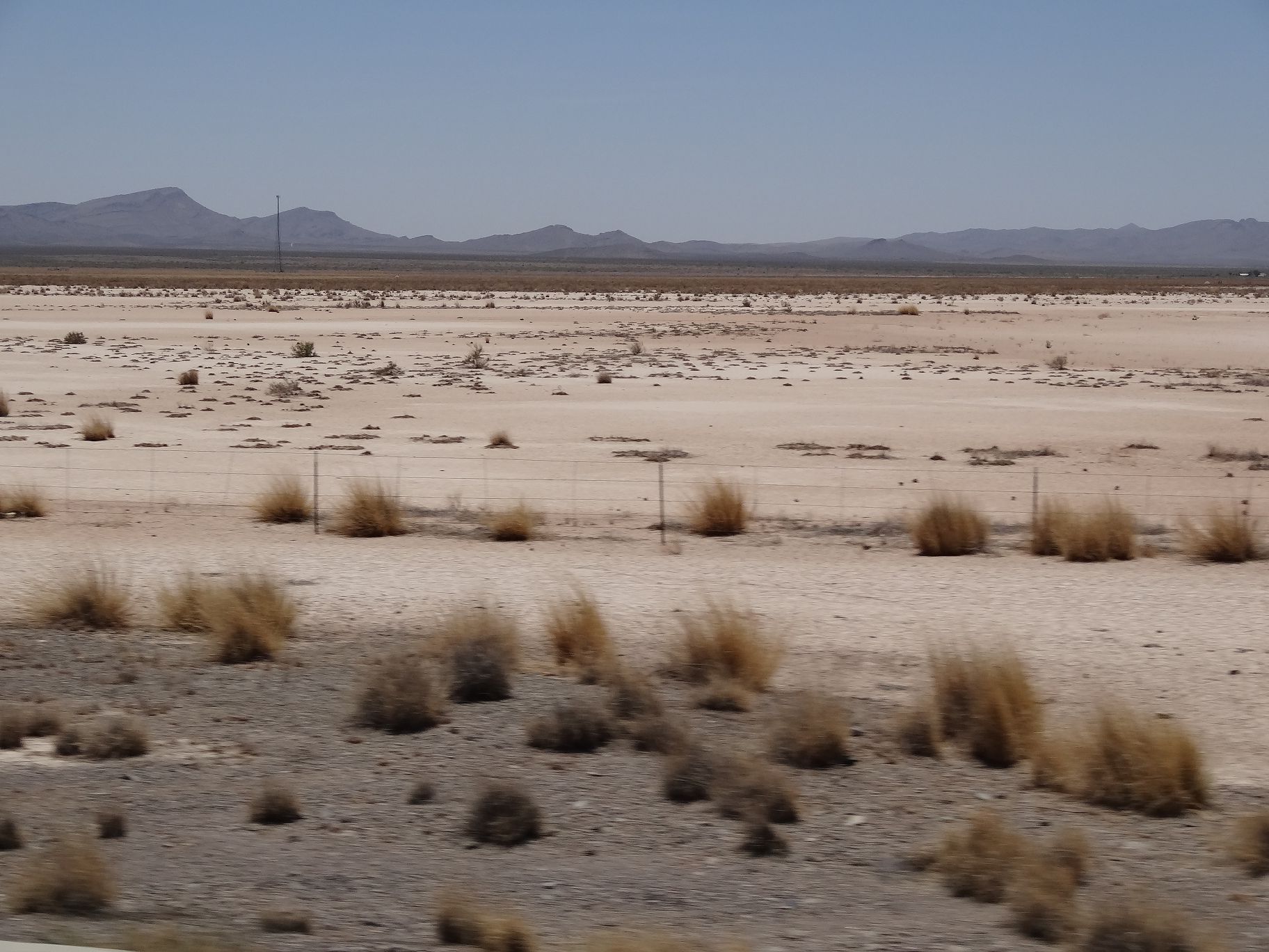 Das Gebiet direkt an der Grenze zu Arizona ist sehr trocken, stellenweise gibt es nur noch trockenes Gestrüpp. Ein großer ausgetrockneter See liegt bei Lordsburg in der Landschaft. Auf weiten Strecken der Interstate 10 wird vor Sandstürmen und Null Sicht gewarnt. Die Sandteufel sind hier sehr zahlreich und unvergleichlich höher. Unser erstes Ziel sollte die Geisterstadt Shakespeare sein. Wir erfuhren, dass die Stadt auf dem Gelände einer bewirtschafteten Ranch liegt, die nur an manchen Wochenenden Führungen durch das Gelände und Shakespeare durchführt. An diesem Wochenende gab es gerade keine Führung, schade.
