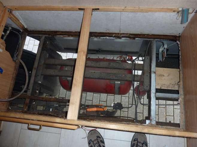 nach entfernen der verfaulten Bodenplatte unter Wassertank