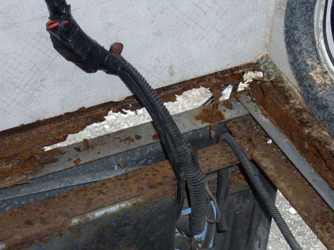 durchgerostete Träger über die gesamte Breite mit Sicht nach draußen