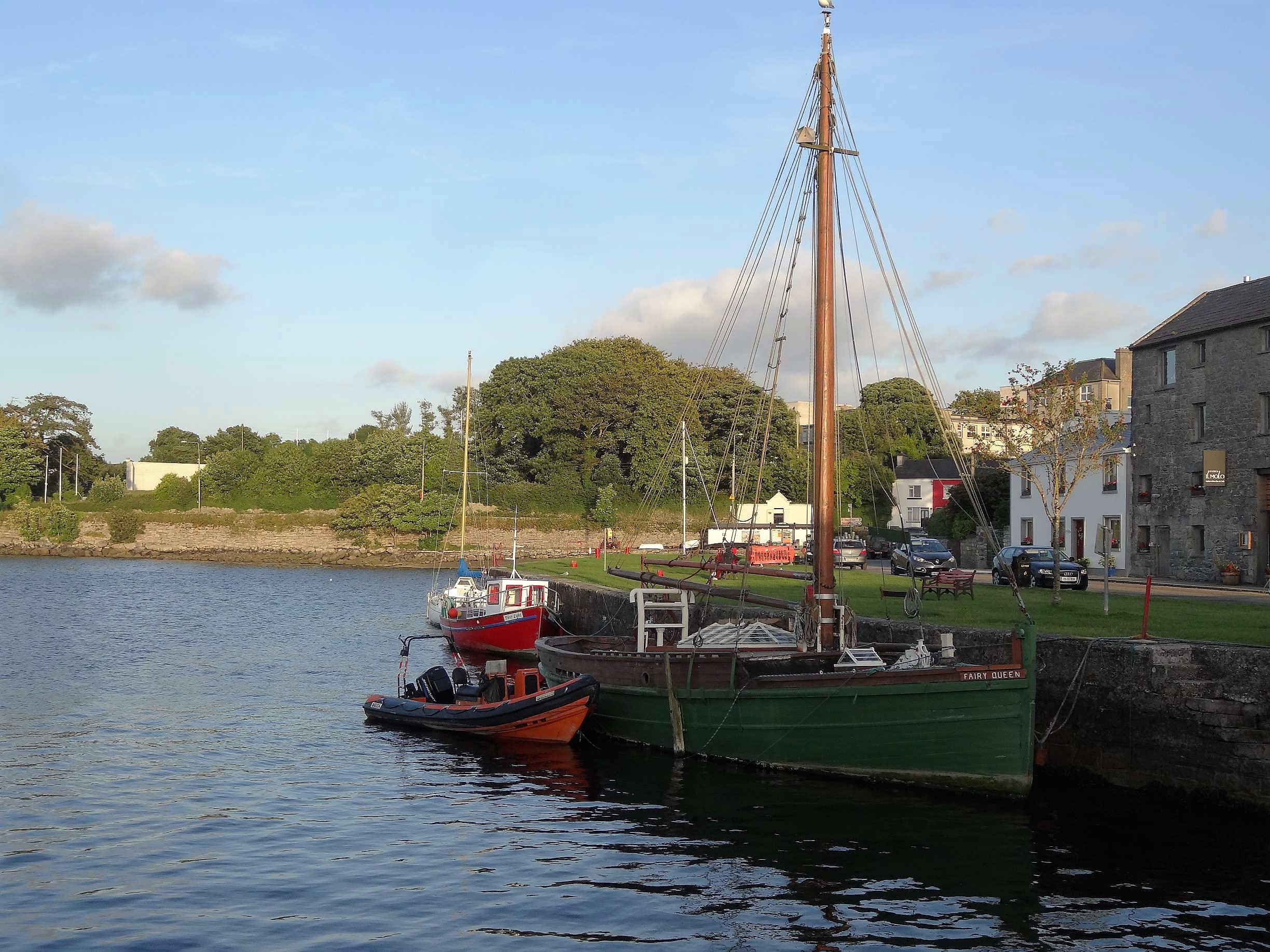 Von Clifden bis zu den Cliffs of Moher fanden wir weder einen Stellplatz noch einen an der Strecke liegenden Campingplatz. Es wurde eine sehr lange und auf den teilweise sehr engen Straßen anstrengende Tour, die erst abends in Kinvarra endete. Der kleine Ort liegt südlich von Galway. Das Dunguaire Castle kann kostenfrei besucht werden. In seiner Nähe finden sich weitere Ruinen, zum Teil mit Grün überwuchert. Im kleinen Hafen liegen zwei Hooker, traditionelle Segelschiffe. Der Parkplatz des Castles diente uns als Stellplatz für die Nacht.
