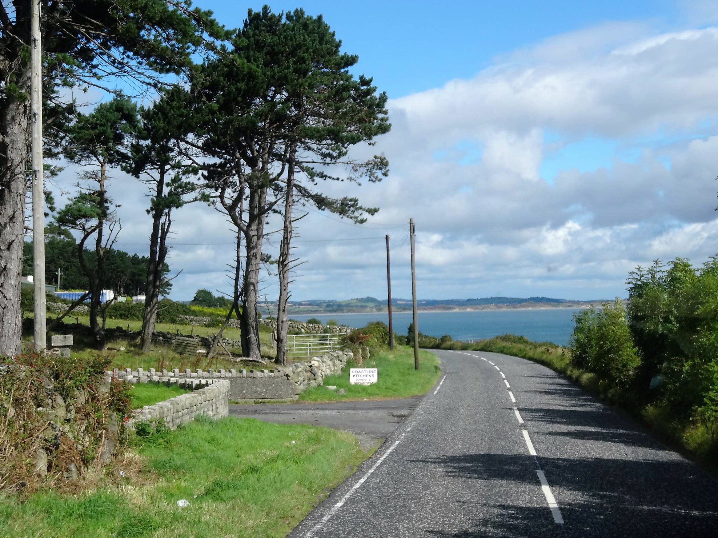 Die A2, hier Mourne Route genannt, führt zwischen den Bergen und der Irischen See fast immer an der Küste entlang. Parkplätze gibt es allerdings nicht, um sich die Berge einmal anzusehen. Um ab und zu unterwegs einen Blick zu riskieren ist die Straße zu schmal. Nach einer Übernachtung auf dem Sandifields Caravan Park (22,- Pfund/Nacht) fuhren wir weiter. Kurz vor Newcastle findet sich ein Parkplatz, von dem aus man die Stadtansicht von See her betrachten kann.
