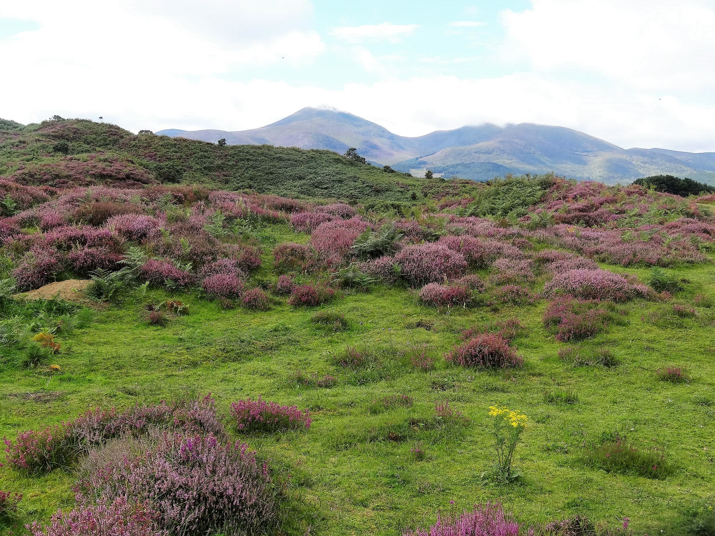 Ein Stück weiter breitet sich das Murlough Naturschutzgebiet aus. Jetzt reifen endlich die Brombeeren, die uns den Weg durch die über und über mit Erika und Farn bewachsenen Dünen versüßten. Ein paar Wege führen durch das große Kaninchenparadies, die alle irgendwann am Strand enden. Zudem hat man von hier einen schönen Blick auf die Mourne Mountains mit dem 850m hohen Slieve Commedagh. Die anderen elf Berge des kleinen Gebirges sind weit weniger hoch. Den größten Teil der Mourne Mountains lassen sich nur zu Fuß erkunden.