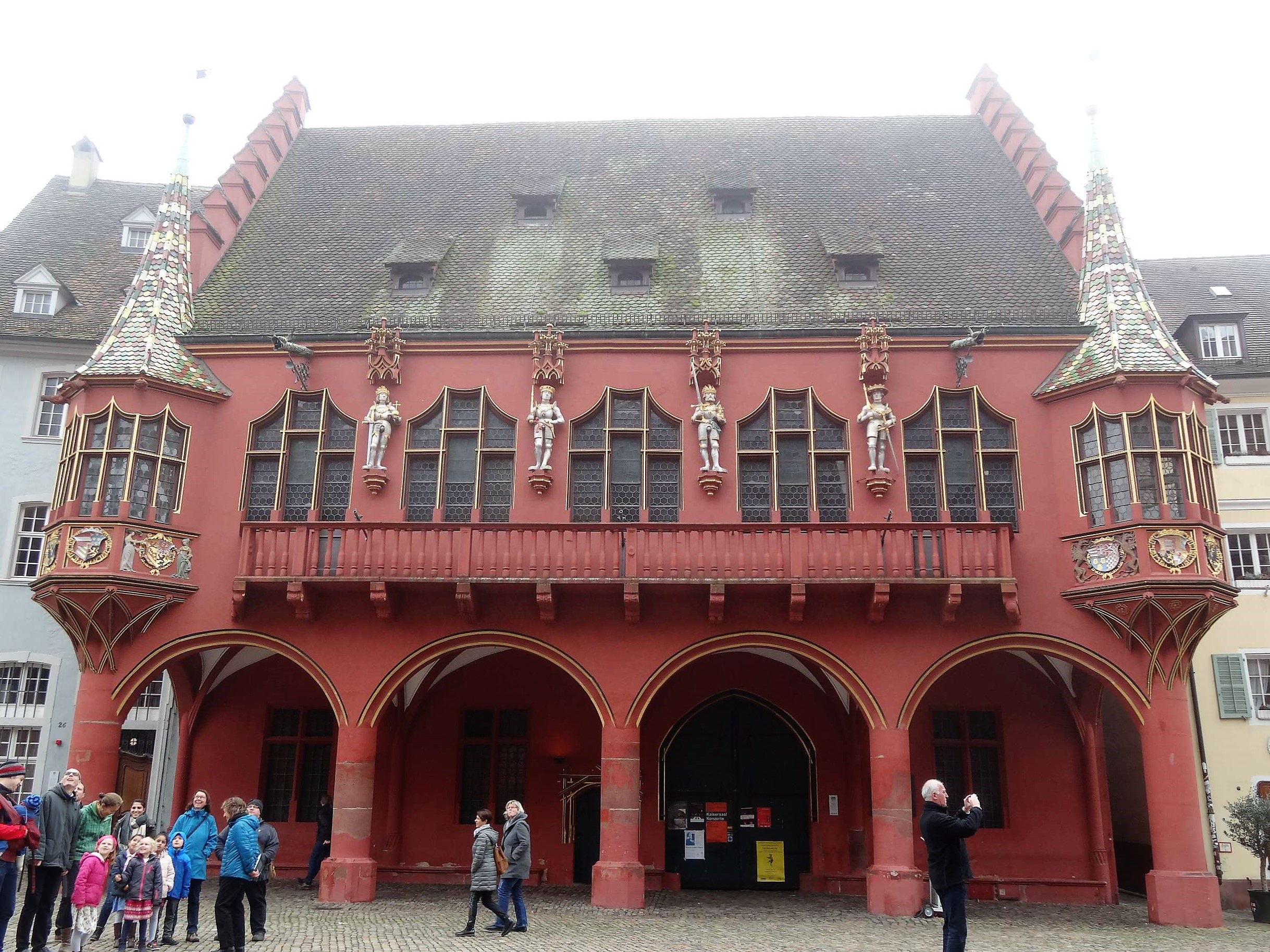 Freiburg bei Nebel und 9°C zu besuchen, ist nicht gerade ein Vergnügen. Bisher löste sich der schon Tage andauernde Nebel um die Mittagszeit auf, aber nicht so bei unserem Freiburgbesuch. So spazierten wir eher kurz und knapp, als die schöne Stadt genießend, durch die Straßen. Die oberste Spitze des Münsters war kaum noch im Nebel auszumachen. Innen ist der Münster sehr dunkel. Es fällt kaum Licht in die dunkel gehaltenen bleiverglasten Fenster. Beeindruckend sind neben dem Münster auch das große Stadttor und die alte Markthalle am Münster.