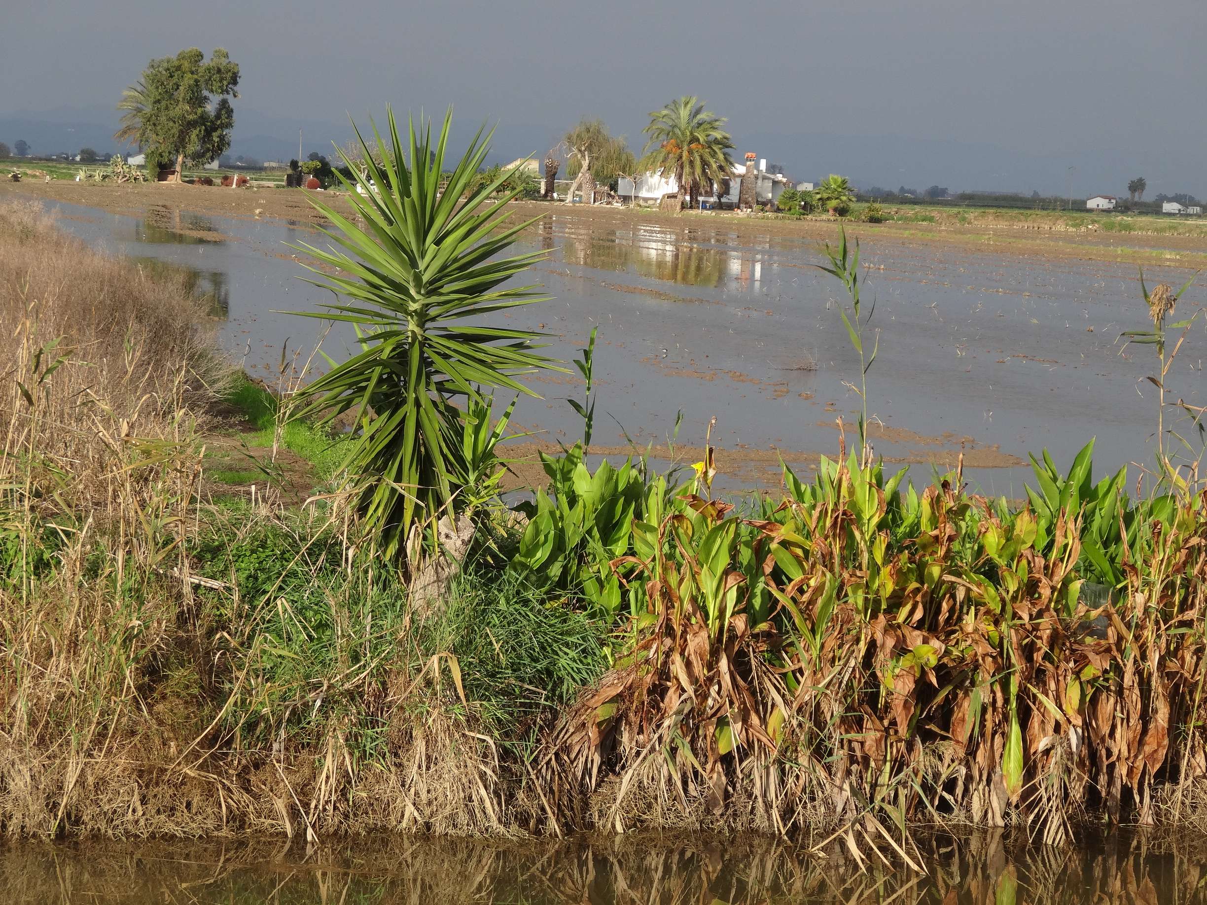 Die Flutung der Felder erfolgt über ausgeklügelte Kanäle, deren Ursprünge aus der Maurenzeit stammen. Jeweils ein großer Kanal fließt parallel zum Ebro Richtung Meer. Alle anderen Wasserwege und Seen sind natürlichen Ursprungs. Was nicht als Reisfeld umgestaltet ist, ist Marschland. Auf der südlichen Halbinsel wird noch immer eine Saline betrieben.