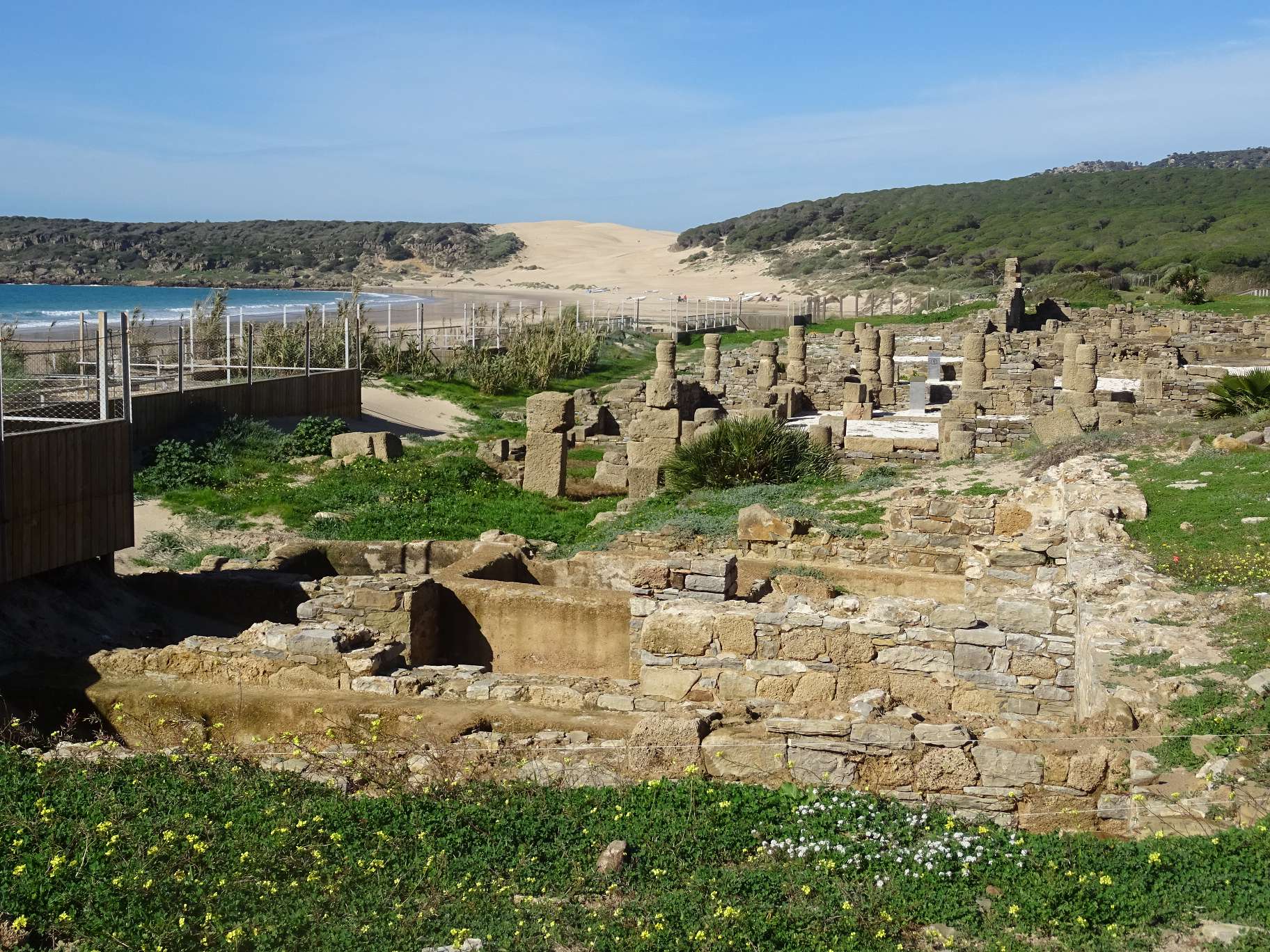 Eine sehr interessante Ecke im Süden der Costa de la Luz ist Bolonia. In der Nähe des kleinen Ortes liegt eine weitere Wanderdüne, die aus dem Grün der Umgebung herausstrahlt. Zwischen Bolonia und der Düne wurde eine andere römische Stadt ausgegraben. Baelo Claudia existierte vier Jahrhunderte lang. Die Hauptaufgabe der Stadt bestand in der Konservierung von Fisch und der Herstellung der Fischsoße Garum. Solch eine Stadt fanden wir auch schon in Torrox an der Costa del Sol, nur dass die Ausgrabungen Baelo Claudias wesentlich umfangreicher sind. Als die Wirtschaft nicht mehr funktionierte und zudem durch Erdbeben in Mitleidenschaft gezogen wurde, gab man die Stadt auf. Rund 500 Jahre später war sie das Sprungbrett für die maurischen Eroberer, die Baelo Claudia ihren Stempel aufdrückten, was vor allem am Theater ganz deutlich zu erkennen ist.
