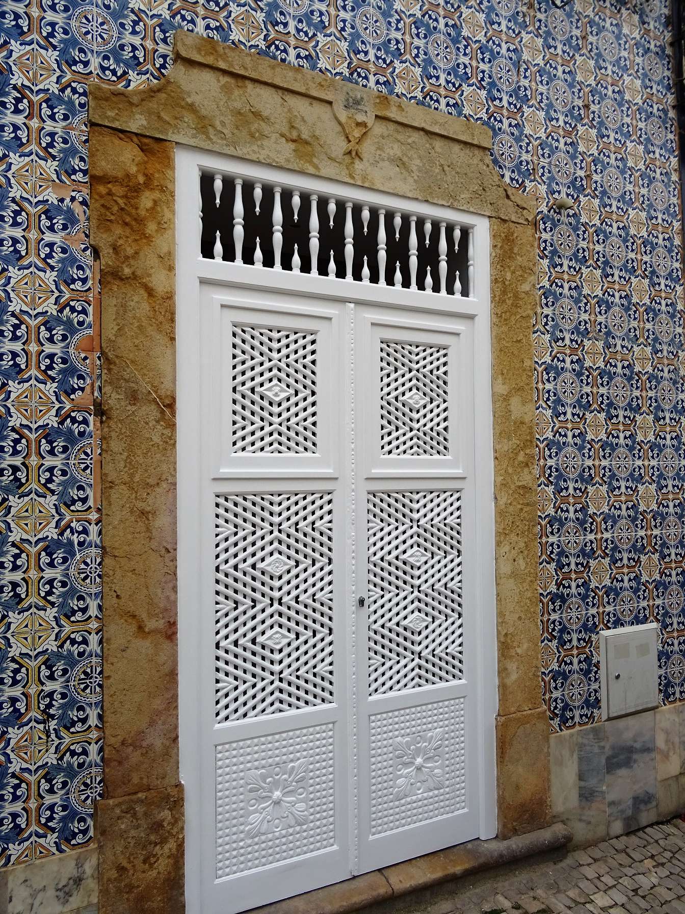 Auffallend in Tavira sind die vielen mit maurischen Fliesen verkleideten Häuserfassaden und die Haustüren, die filigrane Holzgitter als Füllungen besitzen. Leider sind viele andere Häuser verfallen und suchen händeringend nach solventen Investoren, die ihnen neues Leben einhauchen.