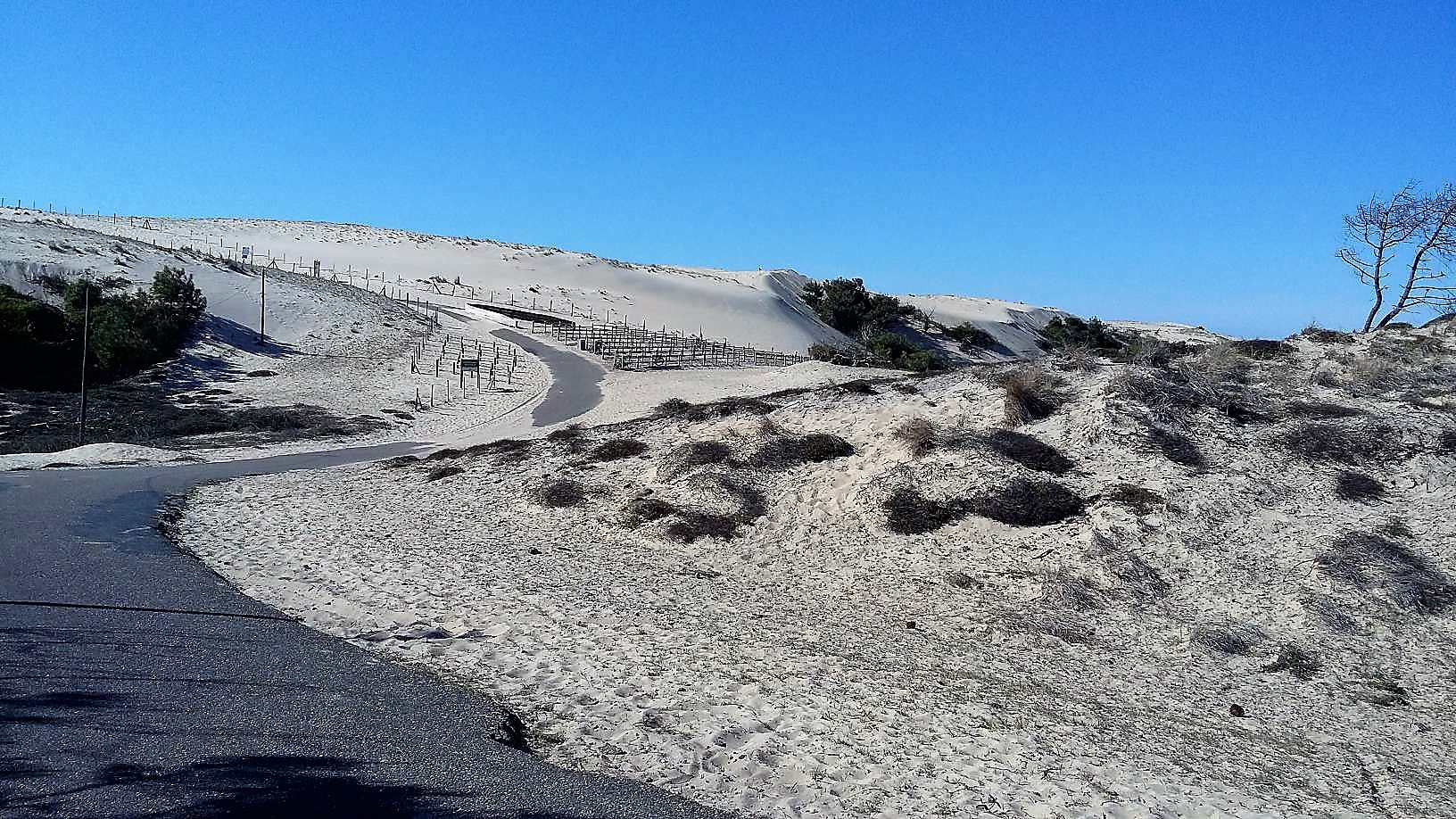 An der ganzen Küste ab hier bis zum Bassin d´Arcachon ist der Weg zum Strand nur durch die Überquerung einer großen, hohen Düne zu erreichen.
