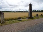 Nur ein paar Meter weiter stehen 5 Meilensteine. Sie sind eine Sammlung verschiedener Meilensteine, die einstmals die Entfernung nach Köln angaben. Die linke davon ist römisch, aus dem 4. Jahrhundert mit der Angabe des Herrschers zu dieser Zeit. Die mittleren Steine sind preußisch und zeigen jeweils eine halbe oder eine ganze Meile an. Die rechte Säule ist der Kreisstein für Jülich aus dem 19. Jahrhundert.