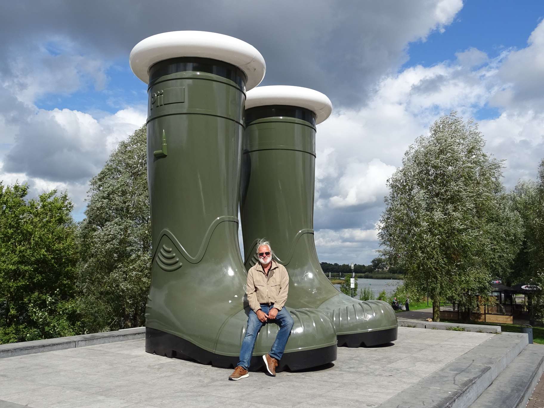 Von Viersen aus brachte uns eine kleine Rundfahrt in die holländischen Städtchen Venlo und Roermond, beide an der Maas gelegen. In Venlo fallen zwischen dem Ufer der Maas und dem kleinen Stadthafen ein paar riesige Gummistiefel auf. Sie sind ein Überbleibsel der „Welt-Garten-Expo Floriade 2012“. Dieses Paar Gummistiefel misst 5 Meter in der Höhe und ist ein schönes Fotomotiv.