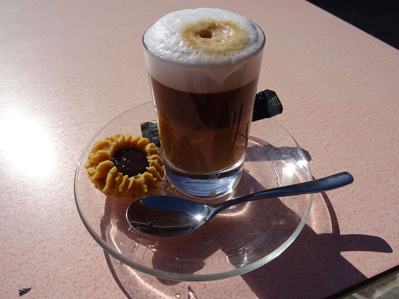 Einen ersten Stopp legten wir in Aourir ein. Im Ort gibt es nicht viel zu sehen, aber der Strand lohnt einen Besuch. Der Sandstrand ist fast menschenleer. In dem Restaurant „La plancha du rocher“ wird der marokkanische Kaffee NusNus serviert. Er schmeckt so gut wie er dekorativ aussieht, allerdings ist er wohl mit 3,60€ der teuerste kleine Kaffee, den man bekommen kann.