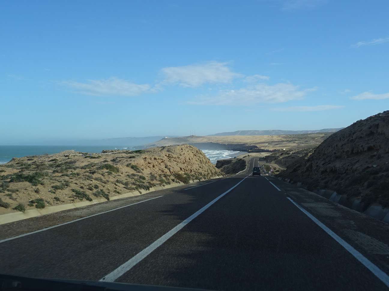 Die Küstenstraße schlängelt sich nun immer am Wasser entlang. Die Landschaft wird immer trockener, obwohl man sich Richtung Norden bewegt. Dann kommt man am Tamri Nationalpark vorbei, wo die Landschaft etwas grüner, als in der Gegend üblich, ist. Die Einheimischen lassen hier ihre Ziegen, Schafe oder auch Kamele weiden.