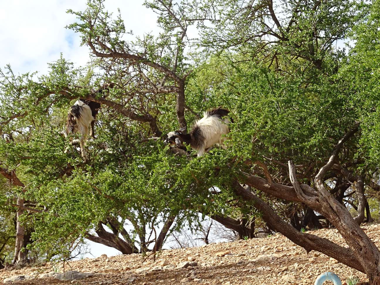 Was uns sehr freute war, dass wir endlich einmal die berühmten Ziegen in den stacheligen Kronen der Arganbäume sehen durften. Diese Ziegen sind richtige Kletterkünstler. Argannüsse sind ihre Lieblingsspeise.