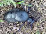 Der Boden in und um Drewelow ist sandig, hier und da gibt es noch fast unberührte Wiesen. Vor ein paar Tagen fiel uns eine Käferart auf, die wir noch nie vorher gesehen hatten. Eine Recherche ergab, dass es sich bei diesen seltsamen, großen Käfern um den Schwarzblauen Ölkäfer handelt. Sie sind sehr groß, werden 3,5cm lang, und sehr behäbig. Eine Tastprobe ergab, dass ihr Körper sehr weich ist. Das liegt daran, dass ihre Flügel nur noch Stummel sind und bald hinter dem Kopf aufhören. Der Körper weist ein schönes „Relief“ auf, was den Käfer optisch sehr interessant macht.