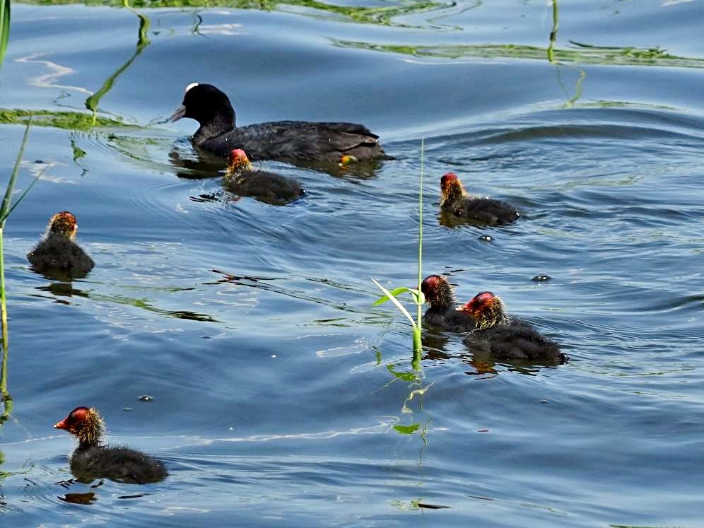 Blesshuhn mit Küken