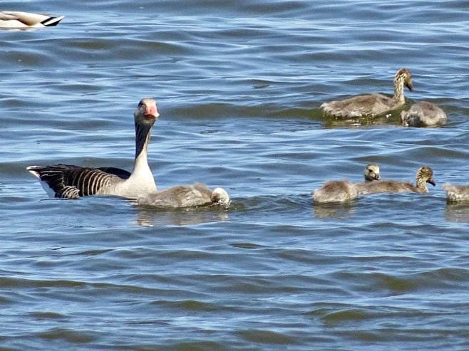 Graugans mit Küken