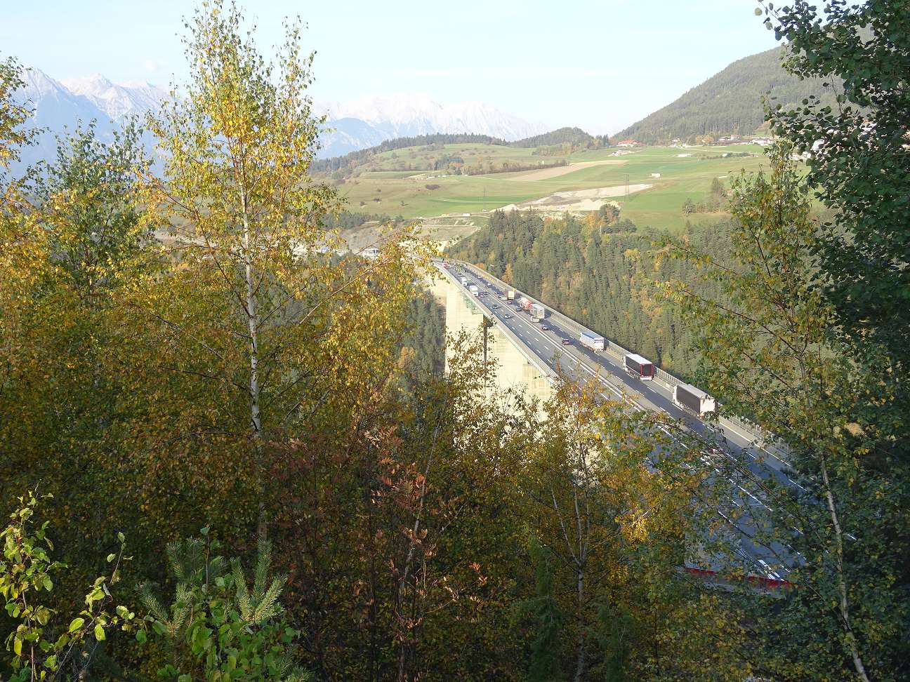 Von der Kapelle aus kann man die Europabrücke sehen, über die man kurz vor dem Rastplatz fährt. Außerdem hat man einen schönen Blick auf die umliegenden Berge. Gerade jetzt im Herbst ist dies ein toller Anblick.