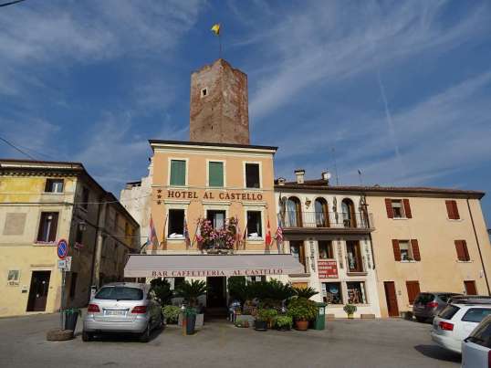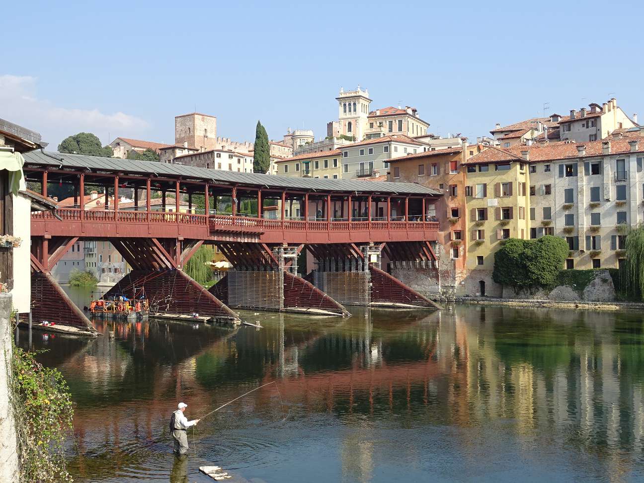 Bassano del Grappa hat jedoch noch mehr zu bieten. Zu allererst ist die Altstadt, die sich zwischen der Hügelspitze und dem Fluss ausdehnt, sehr hübsch. Ganz oben befindet sich die Festung, die nicht öffentlich ist. Man kann nur auf einem Weg um die halbe Festung herum gehen, der sich am Hang entlang schlängelt. Von dort hat man aber einen schönen Blick über die „Unterstadt“ mit der Ponte Vecchia. Von dieser aus ist der Blick den Hügel hinauf mit den schmucken Häusern und der Festung mindestens ebenso schön.