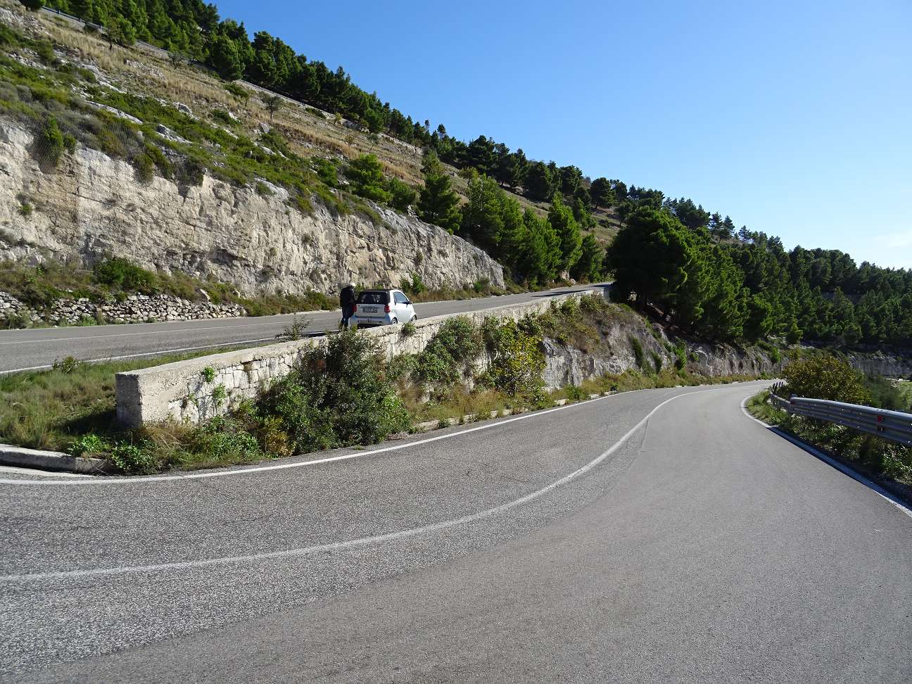 Schon fing es an dunkel zu werden, aber die Straße zurück nach Manfredonia wurde nicht besser. Noch einmal 60 Kilometer Kurvenstrecke verlangten den Rest unserer Kondition ab. Nur ein kurzes Stück wurde durch eine Fernstraße ersetzt, ein weiteres Stück ist in Arbeit. Fast alles der neuen Straße besteht aus Tunneln.