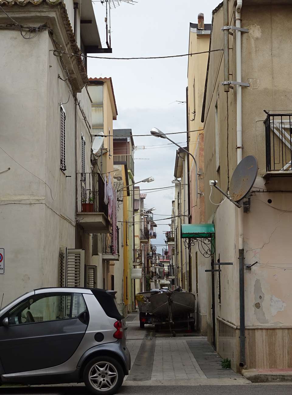 In Marina Schiavonea ist Italien am italienischsten, das fanden wir wenigstens das erste Mal auf unserer bisherigen Italien-Rundreise. Um diese Jahreszeit sind fast ausschließlich die Einheimischen unterwegs. Wenn man durch die engen Straßen geht, wo auch schon einmal Boote abgestellt sind, bekommt man das italienische Leben hautnah mit: die Wäsche trocknet auf Gestellen vor der Haustüre, Leute stehen vor ihren offenen Haustüren und unterhalten sich mit den Nachbarn, laute Unterhaltungen dringen durch die Fenster nach außen usw.