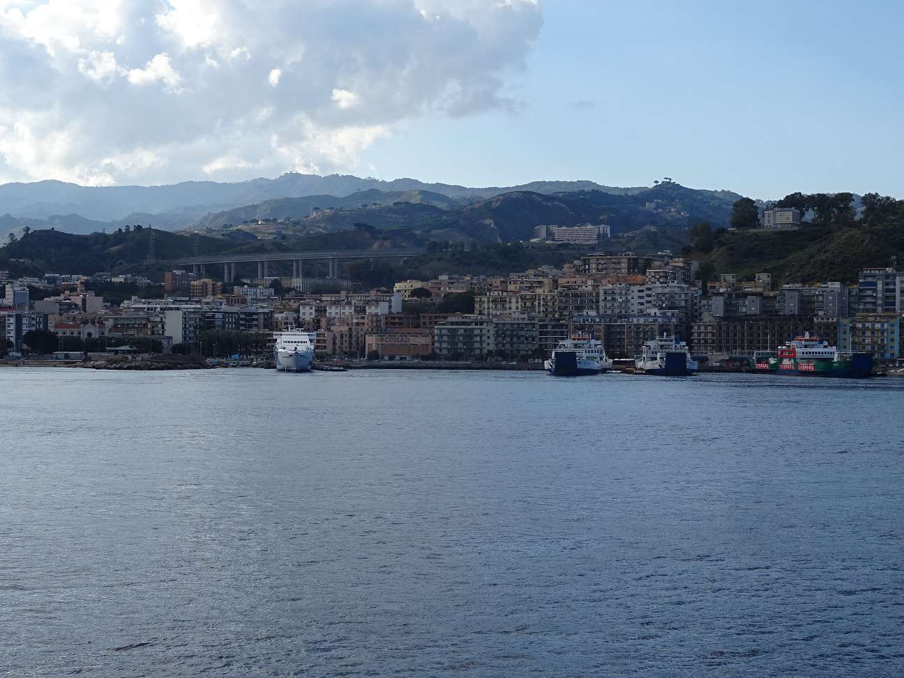 Wir setzten vor drei Tagen mit der Fähre von Villa San Giovanni nach Messina über. Es gibt zwei Fährgesellschaften: Bluferries und Caronte&Tourist. Eine dritte Fähre, Telepass, gibt es auch, aber da wissen wir nicht, ob man ein besonderes Ticket dafür braucht. Telepass ist eine Art Maut, die wir von den Autobahnen her kennen.