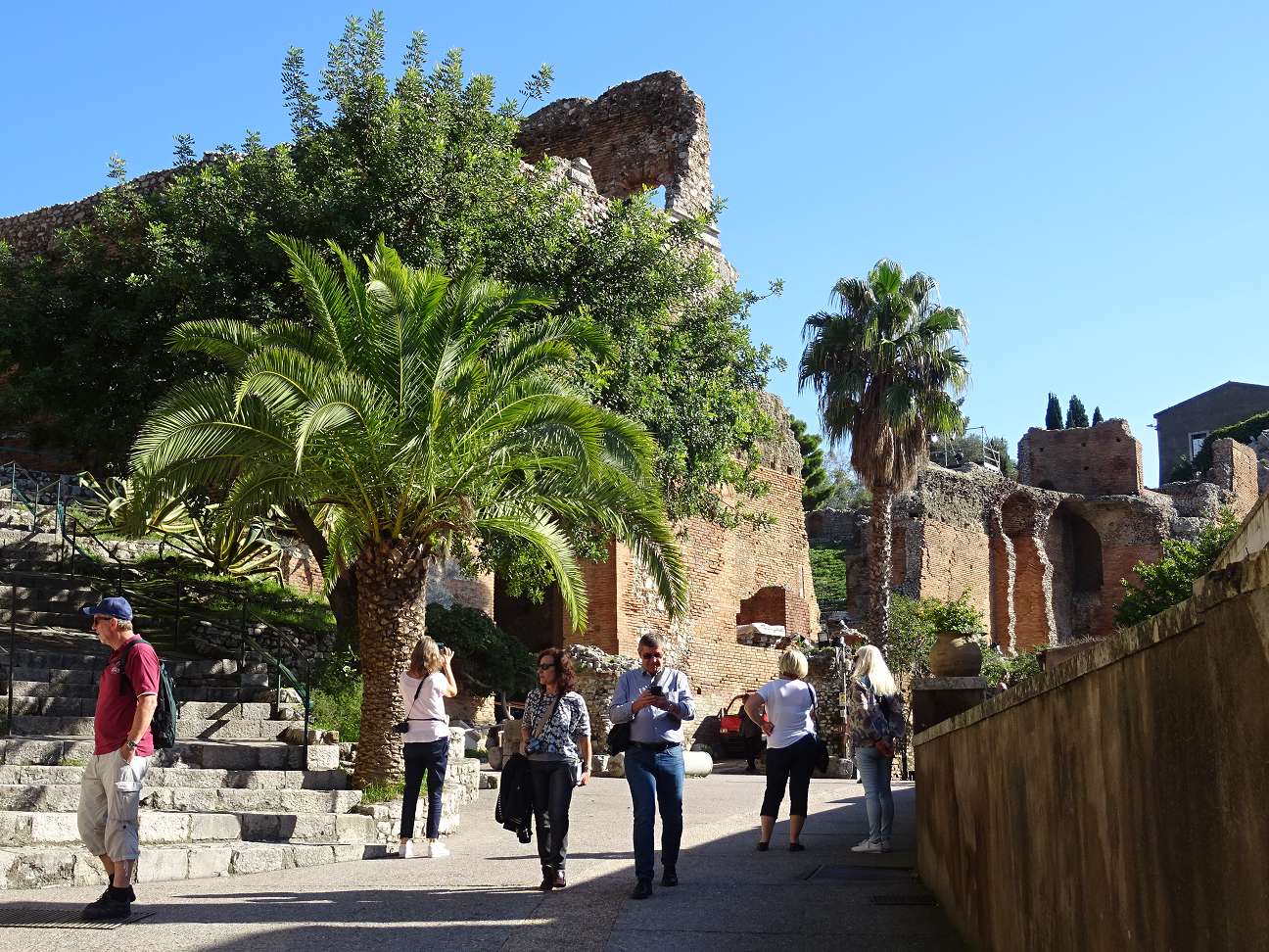 PS: Inzwischen waren wir ein zweites Mal in Taormina. Diesmal mit dem Auto. Auf der Suche nach einem Parkplatz fanden wir das riesige Parkhaus unterhalb des Stadttores Porta Catania. Die Parkgebühren sind allerdings gepfeffert (1 h = 2,-€, 2 h = 6,-€, 3 h = 7,-€). Man kann auf jeden Fall davon ausgehen, dass der Stadtbummel länger als eine Stunde dauert. Übrigens: die Seilbahn ist auch wieder in Betrieb. Die Wartungsarbeiten wurden überraschend schnell abgeschlossen.