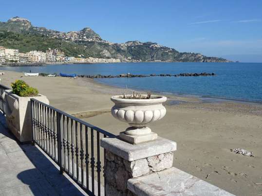 Der Küstenabschnitt rund um das Kap Taormina zählt wohl zu den schöneren auf der Insel Sizilien. Strand und Felsen bilden eine tolle Kulisse.