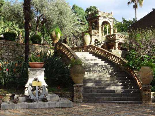 Auch ein schönes Ziel ist der Stadtgarten unterhalb des Teatro Antico. Die Anlage des Gartens erinnert etwas an arabische Einflüsse, die Gebäude aus den typischen flachen Ziegeln der Römer, sowie Natursteinen, sehen wie eine Mischung aus orientalischen Bögen und chinesischen Pagoden aus. Zwischen der exotischen Bepflanzung und den Aussichten auf das Meer und die Küste kann man bestens die Seele baumeln lassen und sich von der Enge und Geschäftigkeit in den Gassen Taorminas erholen.