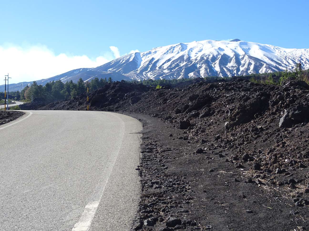 Ein Stück weiter hinten startet der Skilift und der Wanderweg zum Hauptkrater des Ätna. Der Weg zum Monte Conca lohnt sich nicht. Das war wohl vor Urzeiten ein Krater, aber der Berg ist nicht mehr als solcher zu erkennen und vollkommen bewaldet.