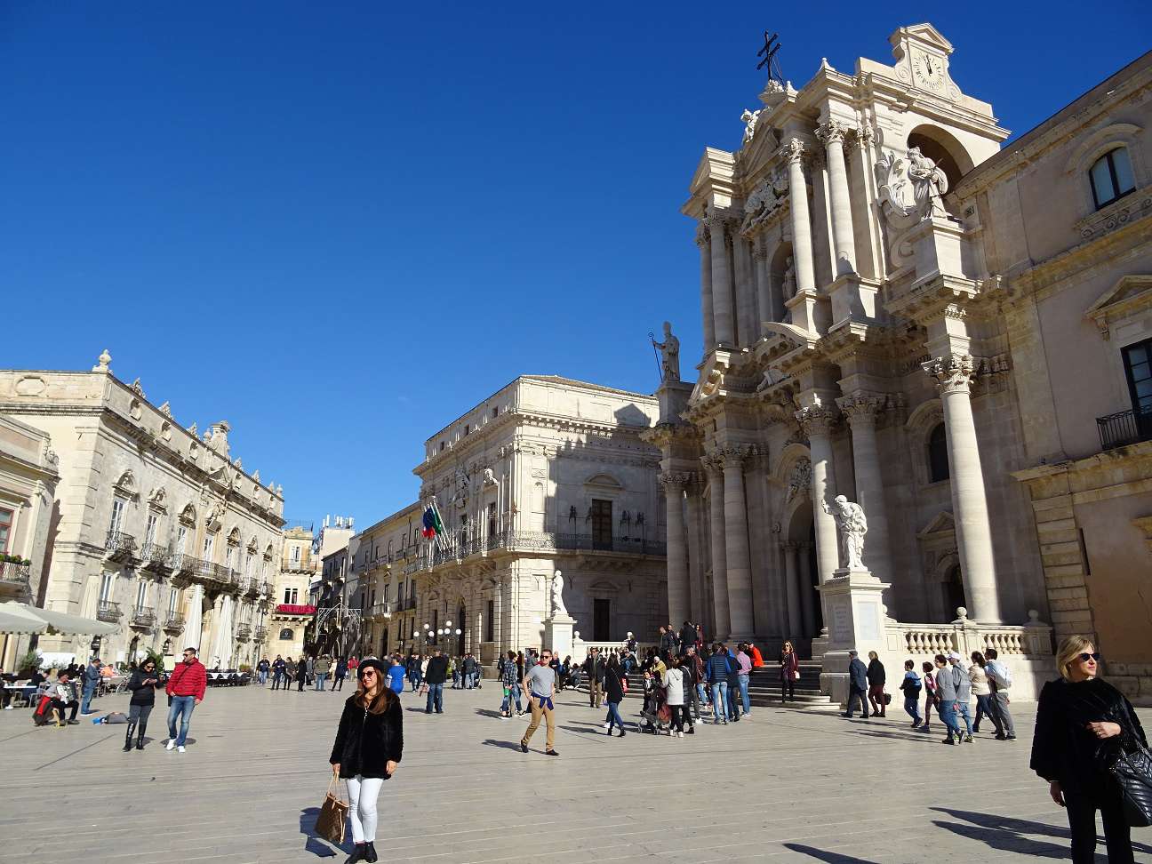 Die meisten der Gassen gleichen denen aller italienischen Städte, nur das sie in Siracusa mit vielen Barockelementen durchsetzt sind. Die Touristen finden hier alles, was sie „brauchen“. Der Domplatz ist auch in Siracusa ein sehenswertes Zentrum, fast alles im Barockstil gebaut. Die Fassade des Doms dominiert die Szenerie, aber auch das Rathaus und verschiedene andere Palazzi lassen die Besucher staunen. Ich komme mir wie in meiner Heimatstadt Dresden vor.