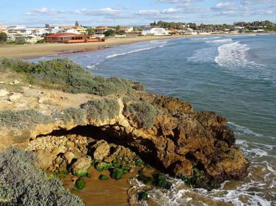 Punta Braccetto ist ein Urlauberort und jetzt im Winter sehr ruhig. Der Ort ist nicht groß und liegt an einer flachen Sandsteinküste mit einigen Sandstränden dazwischen. Außer dem „Baia dei Coralli“ haben noch drei weitere direkt benachbarte Campingplätze geöffnet. Die sind aber viel kleiner. Das Besondere an all diesen Campingplätzen ist, dass jede Camperparzelle ihr eigenes Bad hat, mit Waschbecken, Toilette und Dusche. Warmes Wasser gibt es immer und unbegrenzt und ist im Preis mit enthalten. Der Preis staffelt sich wieder nach der Dauer des Aufenthaltes.