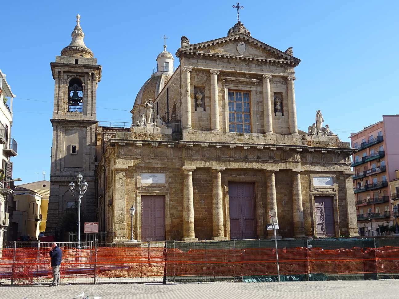 Wenn man auf der Hauptstraße Corso Vittorio Emanuele auf dem Dünenkamm unterwegs ist, sieht man ab und zu durch die Gassen, wie tief die angrenzende Landschaft im Vergleich liegt. Dabei kommt man irgendwann an der Kirche Santa Maria Assunta vorbei.