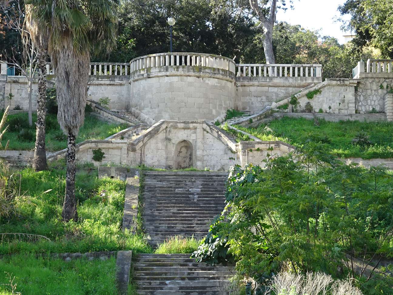 Noch weiter im Westen erreicht man einen schönen Park, den Gemeinschaftsgarten Villa Comunale Guiseppe Garibaldi. Er bietet einen guten Aussichtspunkt mit Blick hinüber zur Altstadt und zur Küste. In der Nachbarschaft steht ein Kirchenkomplex mit der riesigen Statue Madonna delle Grazie auf dem Dach.