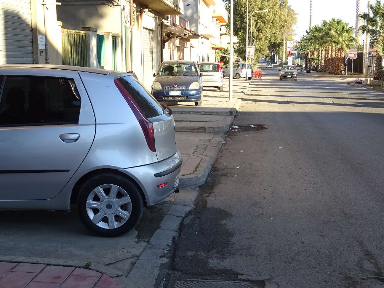 Das ist nicht das Einzige: als Fußgänger hat man es echt schwer in Gela. Während Autos auf den Fußwegen geparkt sind, soweit überhaupt welche vorhanden sind, oder Kneipen den Fußweg als Erweiterung ihres „Reviers“ missbrauchen, müssen die Fußgänger auf der Straße laufen. Sind dann mal Fußwege nutzbar, ist es eher ein Hindernislauf, weil man ständig tiefergelegte und schräge Auffahrten passieren muss.