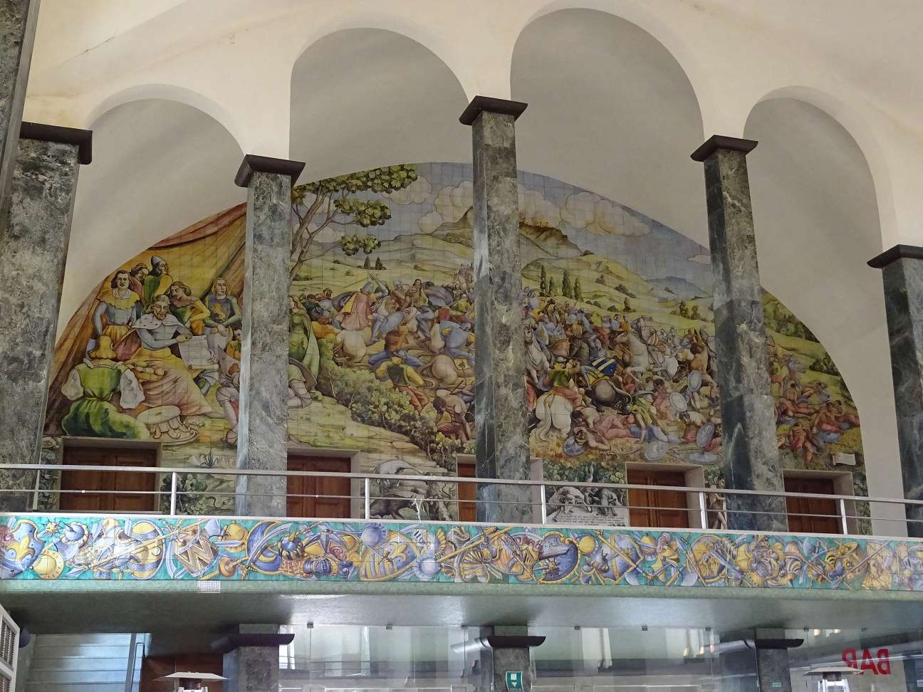 Am Ende dieser Treppe liegt die Piazza Municipio mit dem Rathaus. Daneben befindet sich die Stadthalle. Neben einem kleinen Café wird an berühmte Bürger der Stadt gedacht, von der Antike an. Das Innere der Halle wurde wunderschön mit bunten Keramikfliesen oder -mosaiken gestaltet.