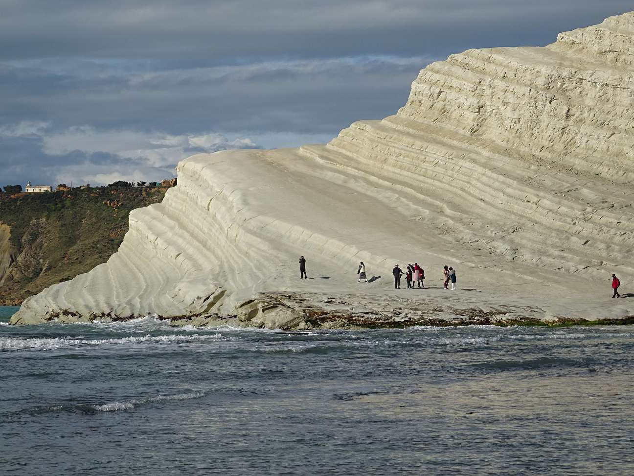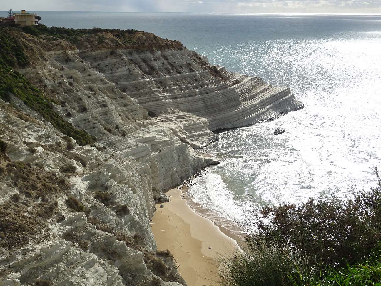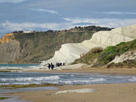 Westlich von Porto Empodocle, am Punta Grande, locken die spektakulären Cliffs aus weißem Kalkstein. Die Scala dei Turchi passen nicht in das an der Küste übliche Bild. Hier hat die Natur etwas ganz besonderes geschaffen. Vom Aussichtspunkt ein paar hundert Meter westlich des Cliffs hat man einen schönen Blick auf die weiße Felsnase. Sie ist allerdings nur bei Sonnenschein gleißend weiß, sonst erscheint sie in fahlem Grau.