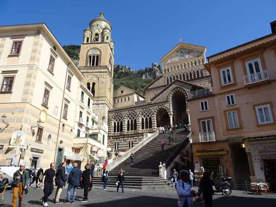 Die Kathedrale von Amalfi ist wunderschön. Sie wurde im 10. Jahrhundert errichtet und seither mehrfach erweitert und umgestaltet. Eine große Freitreppe führt zum Haupteingang.