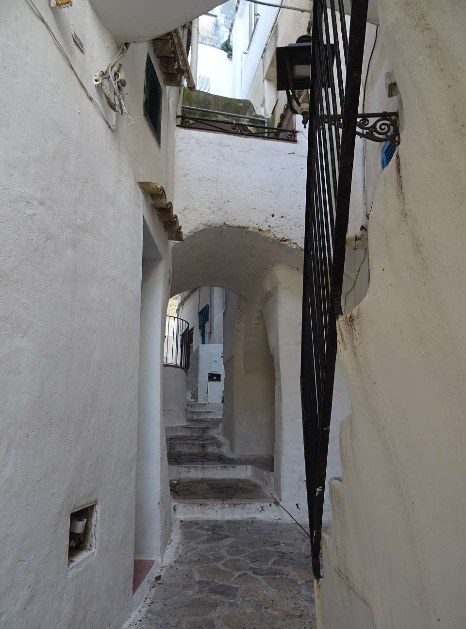 Die Gassen bestehen fast alle nur aus Treppen und werden oft von Bögen überspannt. Nette kleine Ecken findet man überall. Von der halb umlaufenden Terrasse kann man die Küste entlang und über Hafen und Strände blicken.