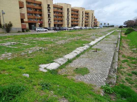 Dank der Tatsache, dass es den riesengroßen Parkplatz an der Marina in Terracina gibt, bekamen wir die Gelegenheit, doch ein Stück von der Via Appia zu sehen. Die Mutter der Straßen Italiens, so etwas wie die Route 66 in den USA, wurde von den Römern gebaut, um schnell durch das riesige Reich zu kommen. Zuerst waren es Eroberungen, dann diente sie der Erhaltung des Reiches und irgendwann war sie eine wichtige Handelsroute. In den meisten Fällen verlief sie schnurgerade, so wie zwischen Cisterna di Latina, südlich von Rom, bis kurz vor Terracina. Das sind ca. 40km. Sie wurde jedoch in der Neuzeit überbaut und ist heute die Staatsstraße 7.