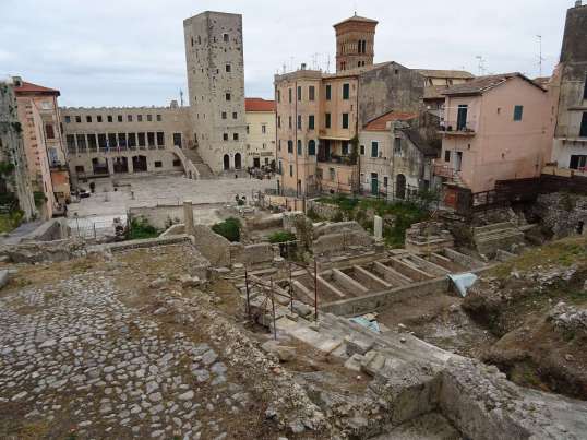 römisches Aemilius Forum mit dem Theater im Vordergrund