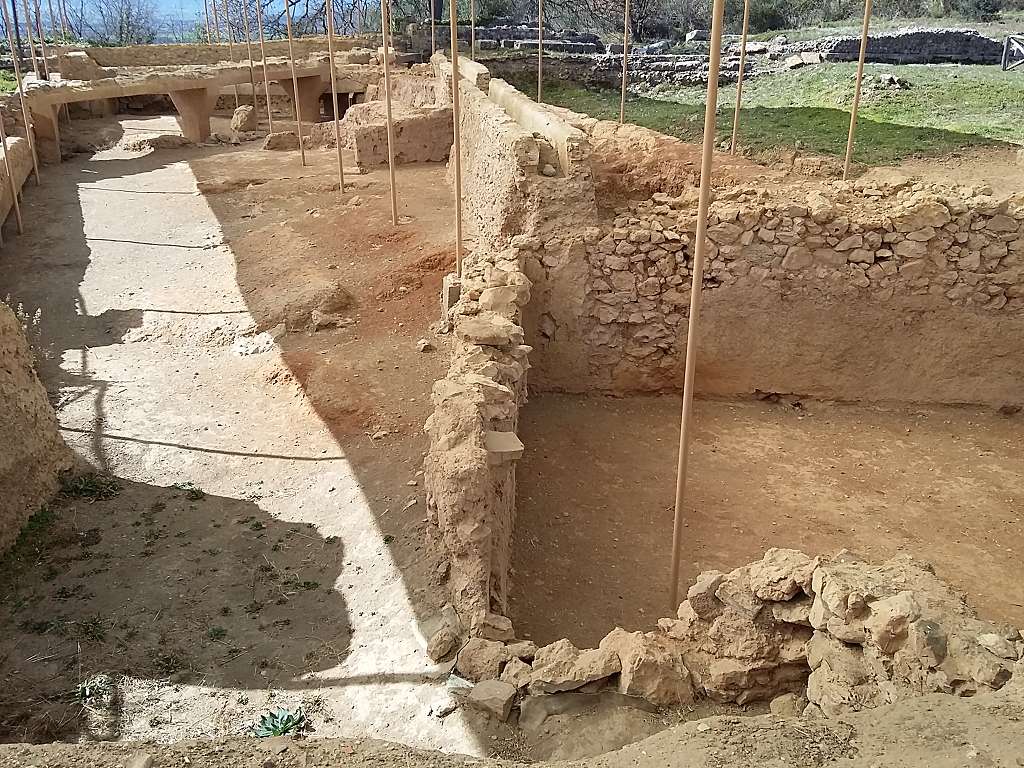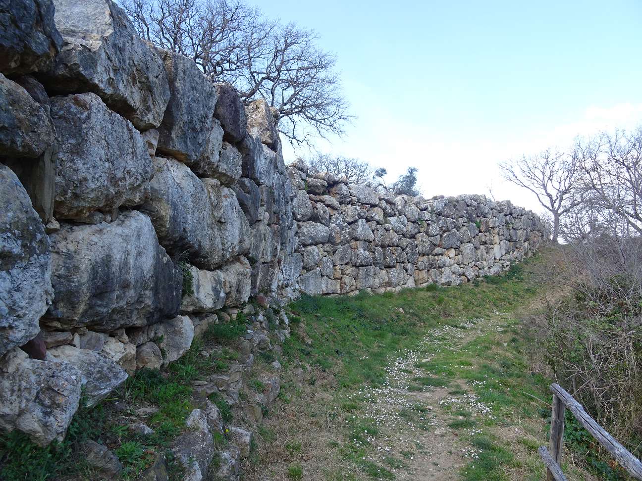 Die Stadtmauer ist ca. 5m hoch, umschließt auf 3km Länge zwei Hügel und besteht aus einem gewaltigen Zyklopenmauerwerk. Wie haben die damals nur diese riesigen Steine bewegt? In einigen dieser Kalksteine sind größere Einschlüsse von Eisenerz und Kupfererz zu finden.