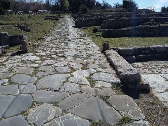 Wenn man vom Forum aus in Richtung Museumseingang geht, spaziert man an der originalen Römerstraße entlang, die in die Stadt Roselle führte. Am unteren Ende der Straße stand ein großer rechteckiger Brunnen. Gegenüber liegen noch die Überreste einer weiteren kleinen Therme.