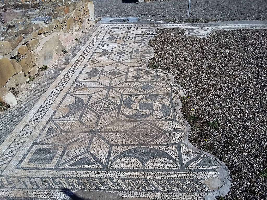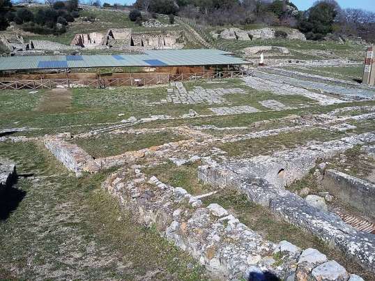 Unterhalb der Zisterne beginnt das ausgegrabene antike Stadtzentrum, beginnend mit einem riesigen römischen Wohnhaus. Es besitzt unzählige Zimmer mit Mosaikfußböden, Gängen und zwei Badezimmern, die sich rund um ein Atrium gruppieren.