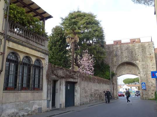 Die Stadtmauer ist ebenfalls noch zu einem großen Teil erhalten, allerdings zumeist rekonstruiert. Teilweise kann man auf ihr entlang laufen. Man kann die Altstadt von Pisa aber auch durch andere Stadttore betreten oder verlassen.